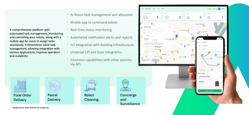 RoboHub is AutoveX’s intelligent middleware platform that connects and coordinates robots from different brands into one unified system. Instead of operating in silos, your delivery, cleaning, and service robots can now communicate, share resources, and work together effortlessly.